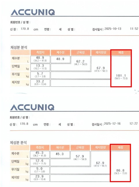 [부천점] 다이어트 한약 비움탕+미감탕 2개월 복용 인바디 전후