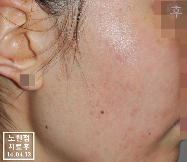 어느정도 피부상태가 완화된 후 여드름자국시술인 엠톤으로 진피층의 회복을 도와