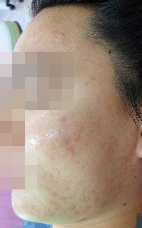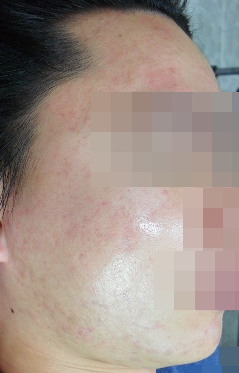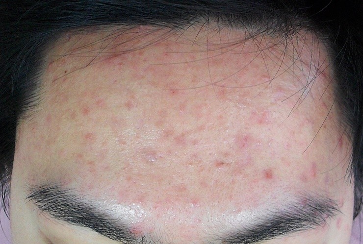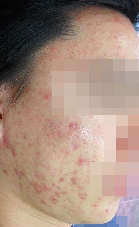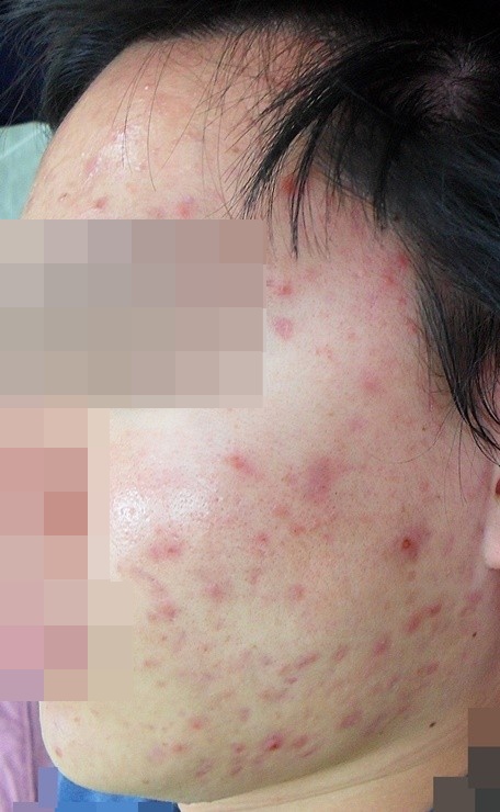 이마, 양볼에 생긴 여드름 치료 사진입니다.