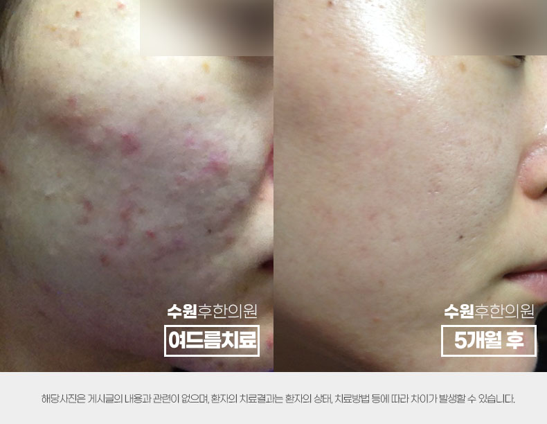 후한의원 수원점 여드름/여드름자국/여드름흉터 치료 5개월 치료 후기 특징:여드름/여드름자국/여드름흉터 맞춤 한약 + PDT + 아크네케어 + 홈케어 + 매직(엠톤) + 필링(미세약초침)