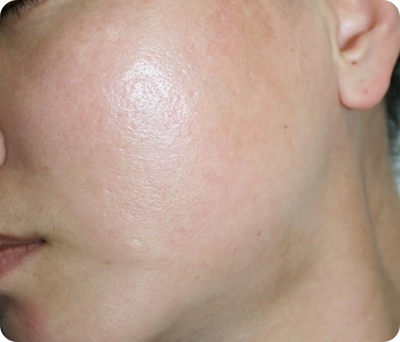 아이스픽 형 흉터 TYPE 3) 피부가 굉장히 얇으며 모공이 거의 보이지 않는 아이스픽형 흉터