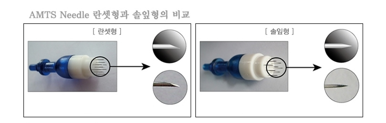 일반적으로 많이 사용하는 니들형 또는 란셋형 니들에 비해 굵기가 얇은 솔입형 니들을 이용한 도장침을 사용함으로써 상처를 최소화하여 피부에 불필요한 자극을 남기지 않습니다. 가는 니들을 사용함으로써 통증 또한 그만큼 적어짐은 물론입니다.