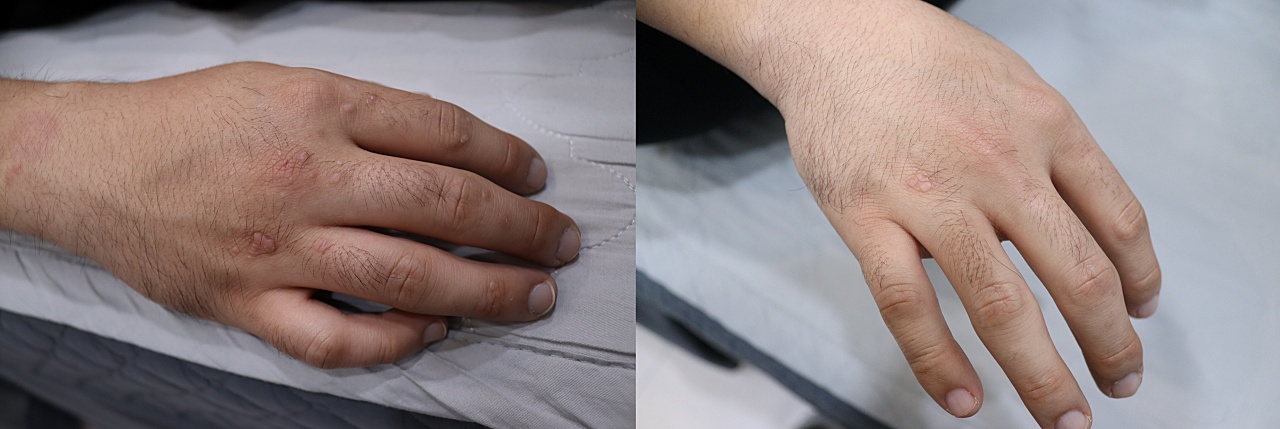 2년전 생긴 사마귀로 냉동치료 6개월 및 레이저 시술 수회 받았으나 재발하여 내원한, 만 22세 환자입니다. 탕약 2개월과 약침 치료를 병행하여 완치되었습니다.