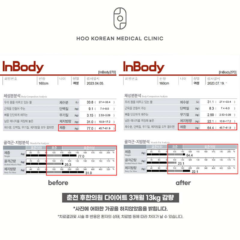 춘천 후한의원 다이어트 3개월 전, 후입니다.
