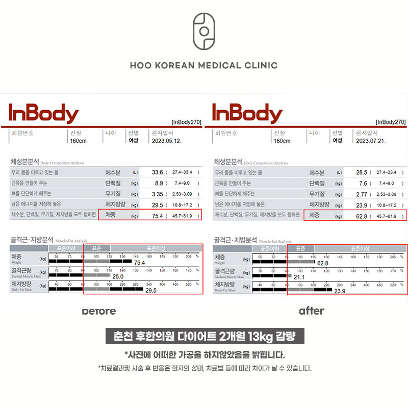 춘천 후한의원 다이어트 2개월 전, 후입니다.