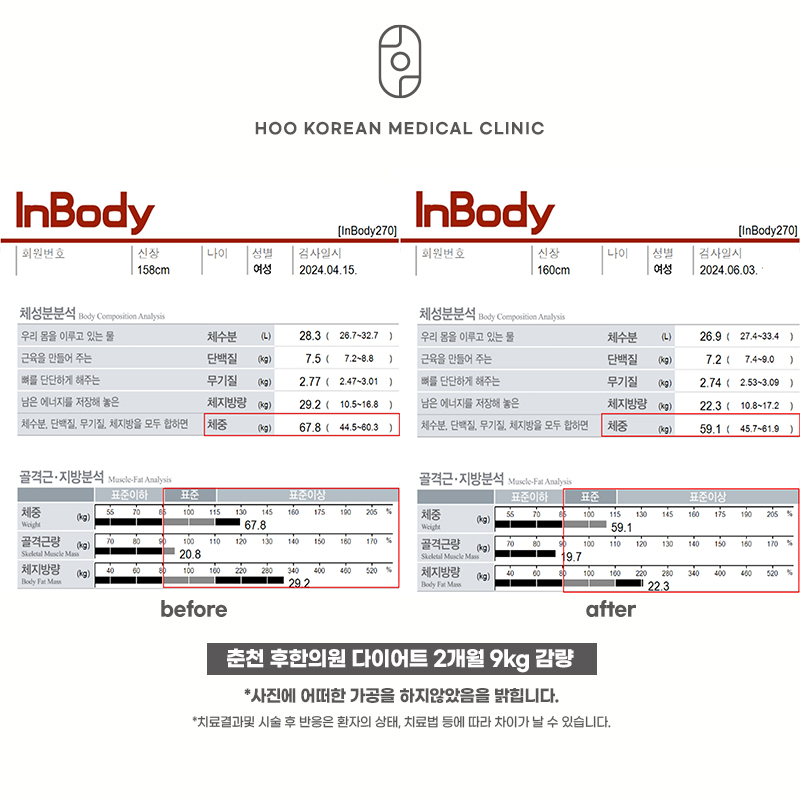 춘천 후한의원 다이어트 2개월 전, 후입니다.