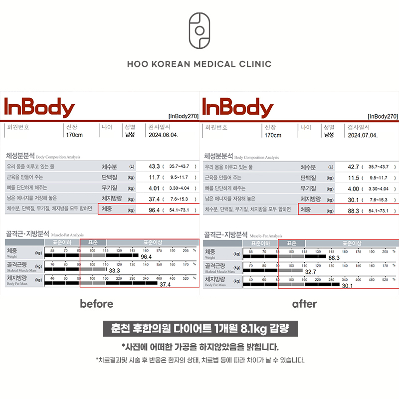 춘천 후한의원 다이어트 1개월 전, 후입니다.