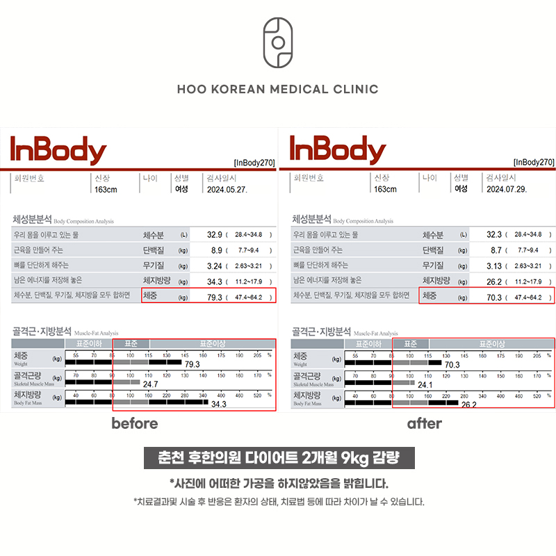 춘천 후한의원 다이어트 2개월 전, 후입니다.