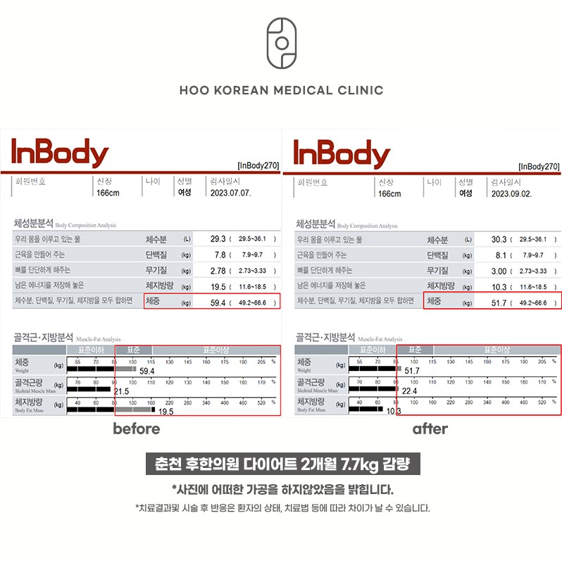 춘천 후한의원 다이어트 2개월 전, 후입니다.