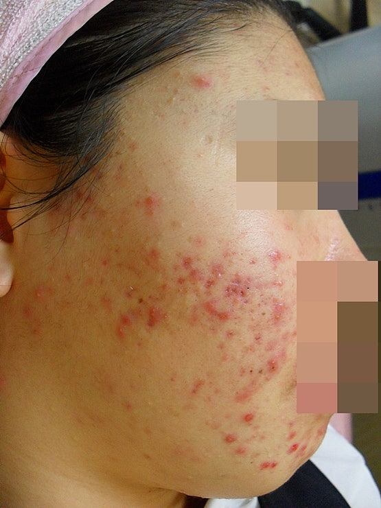 검붉은 여드름자국 치료 사진입니다.