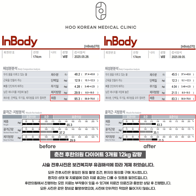 춘천 후한의원 다이어트 3개월 전, 후입니다.