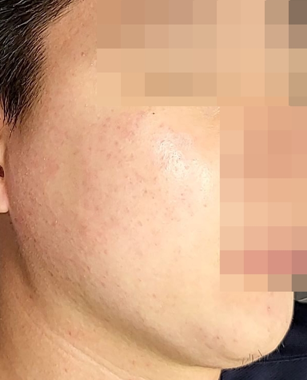 검붉은 여드름자국 및 얕은 패인흉터 치료 사진입니다.
