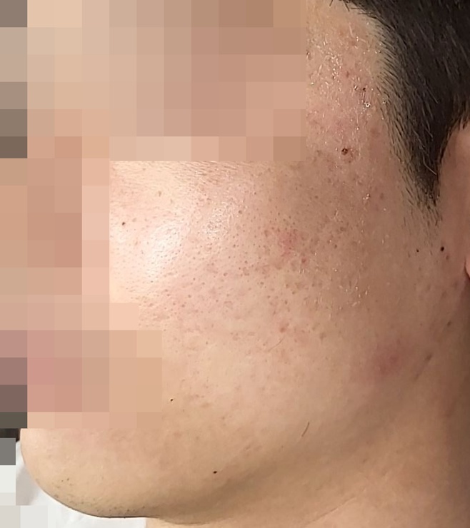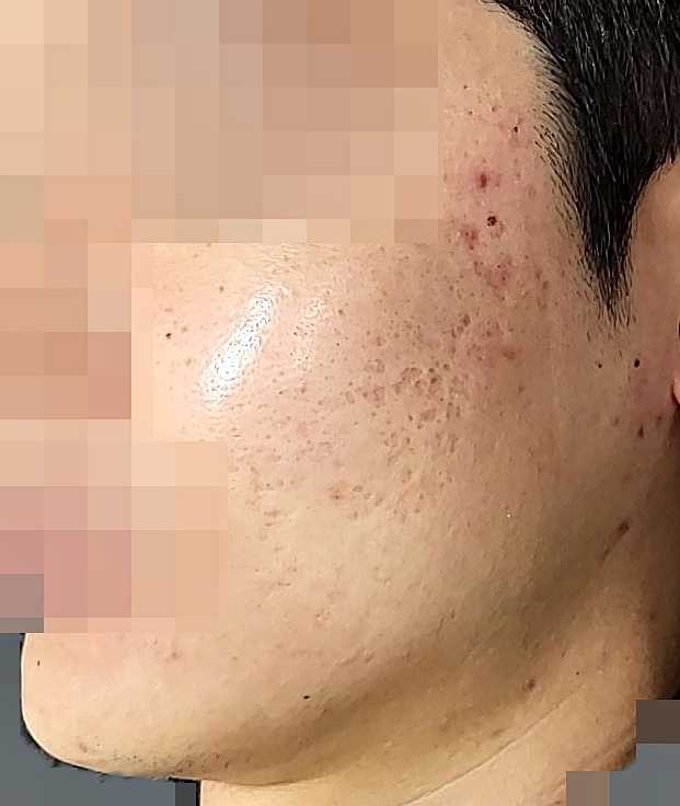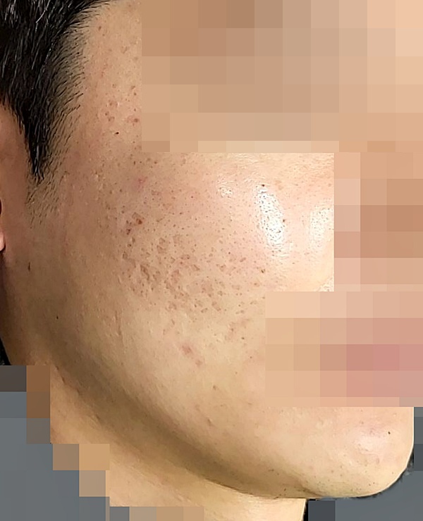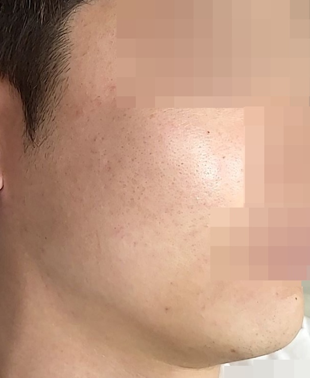 양볼에 생긴 패인흉터 치료 사진입니다.