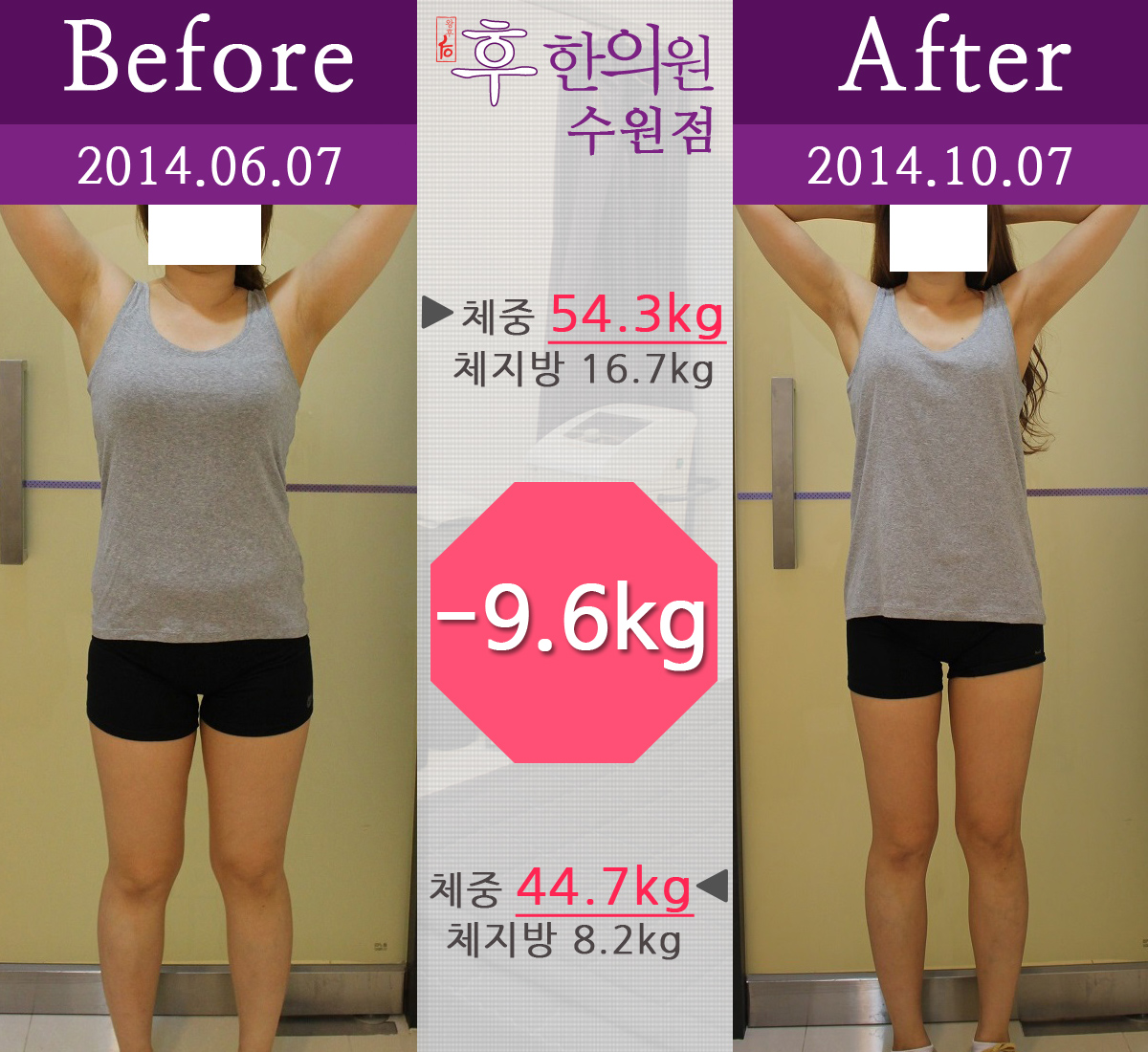 [ 체중 : 54.3kg ] -> [ 체중 : 44.7kg ] 총 -9.6kg