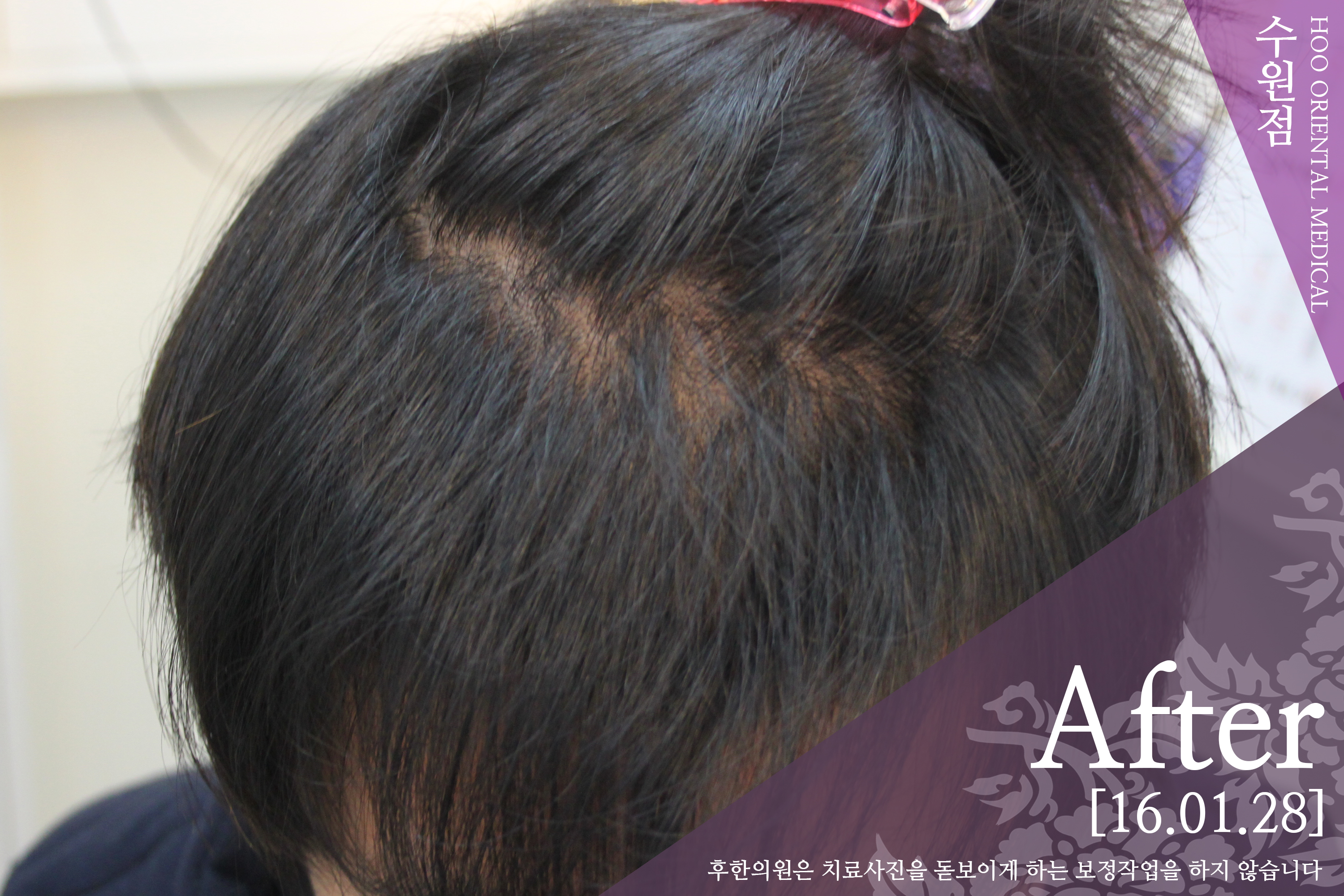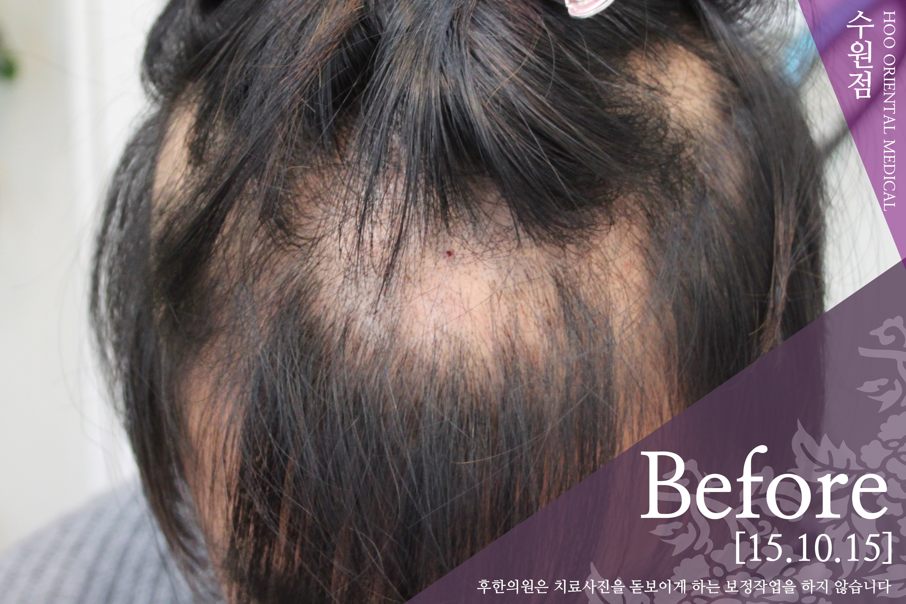 처음내원시 모발 끊어짐이 매우 심하여 두피 전체로 원형탈모가 진행중에 있었으며