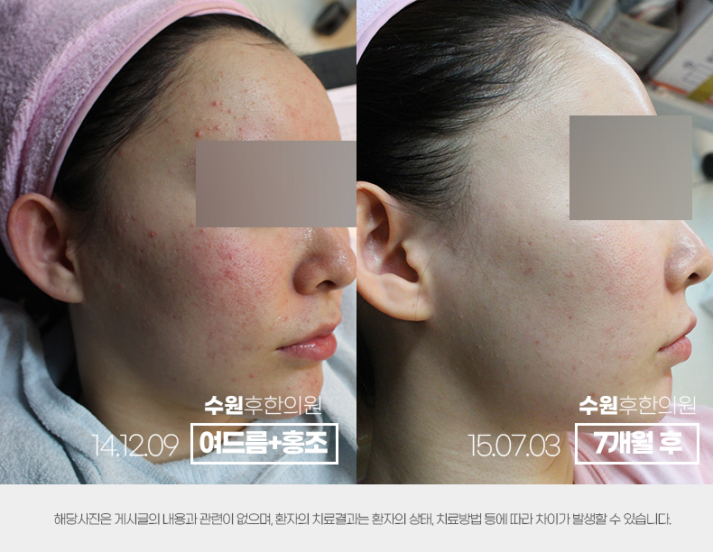 후한의원 수원점 좁쌀여드름 + 안면홍조 치료 후기 특징: 좁쌀여드름 및 홍조 동반 아쿠아케어+PDT+귀약침+홈케어+ 한약 진행