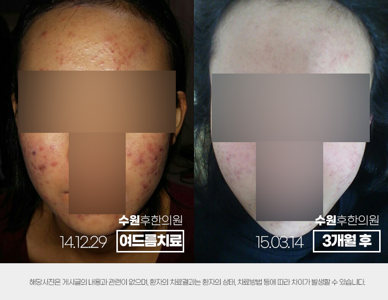 후한의원 수원점 여드름 치료 3개월 치료 후기 특징: 얼굴 전체 화농성 여드름 맞춤 한약 + PDT + 아크네케어 + 홈케어