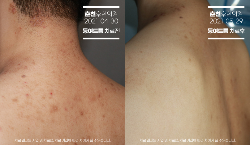 등여드름 치료 전후