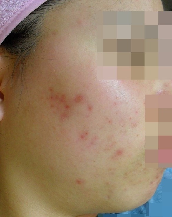 여드름, 붉은 자국 치료 사진입니다.