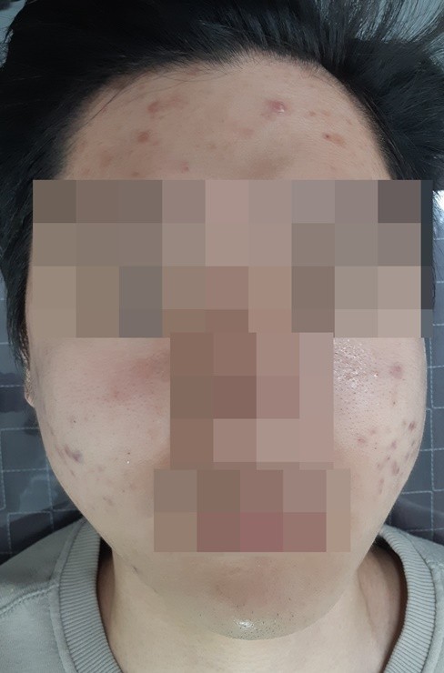 여드름 검붉은 자국 치료 사진입니다.