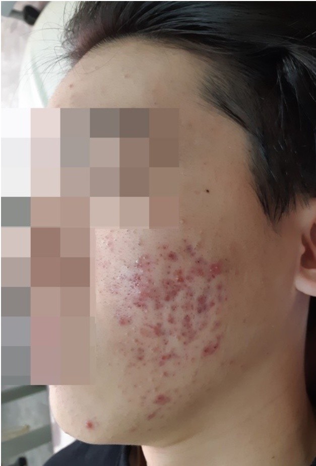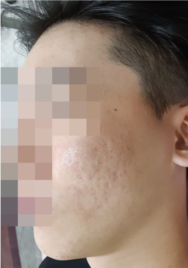 여드름 검붉은 자국 치료 사진입니다.