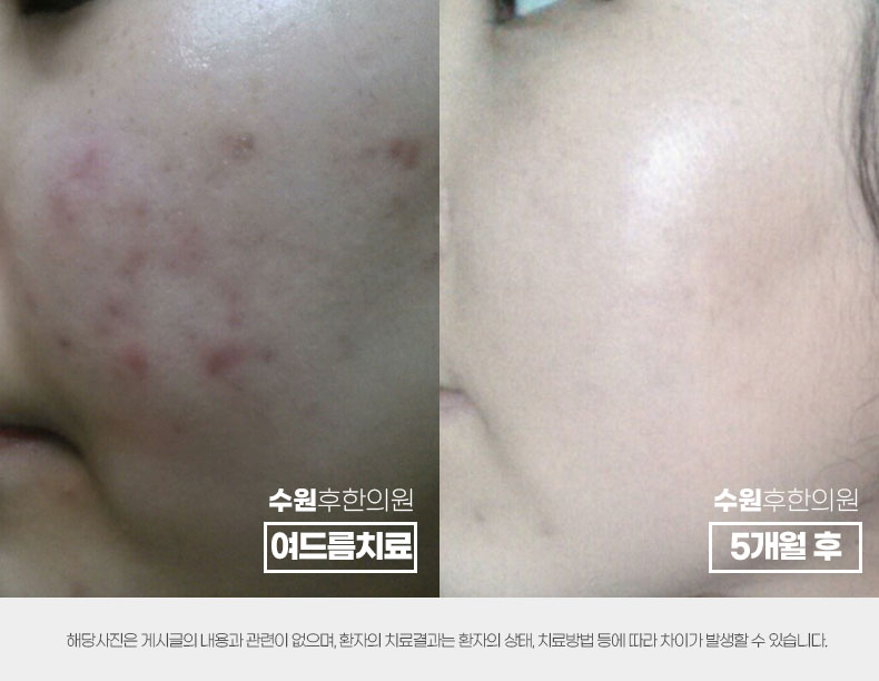 후한의원 수원점 여드름/여드름자국 치료 5개월 치료 후기 특징:여드름/여드름자국 맞춤 한약 + PDT + 아크네케어 + 홈케어 + 매직(엠톤) + 필링(미세약초침)