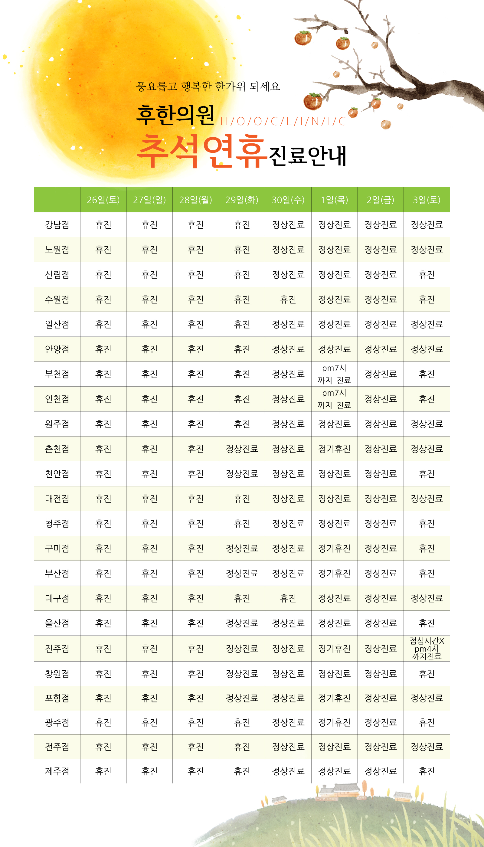 2015년 추석연휴 및 개천절 진료일정