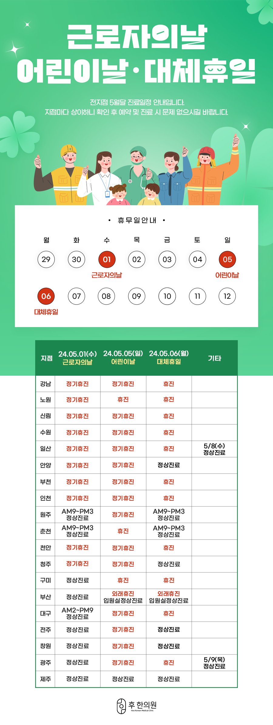 2024년 5월 근로자의날, 어린이날, 대체휴일 진료일정