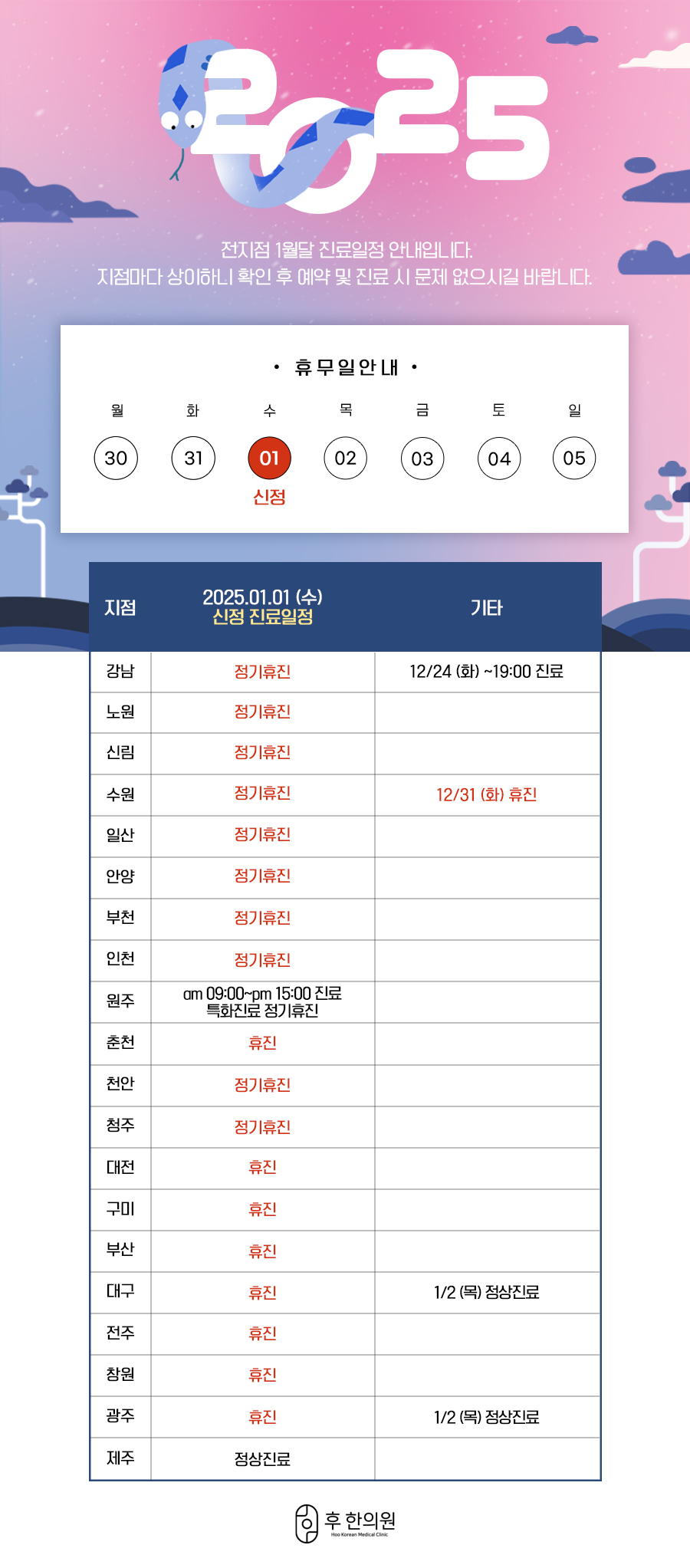 2025년 1월 신정 진료일정