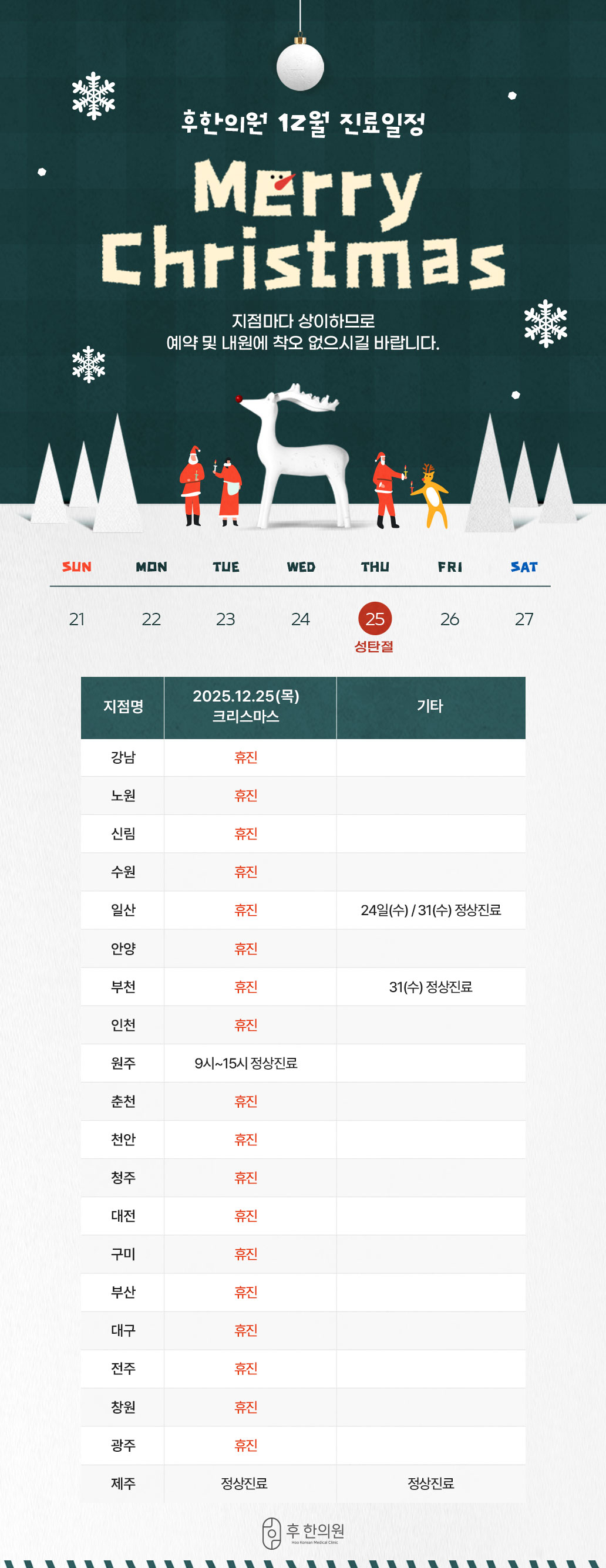 2025년 12월 크리스마스 진료일정