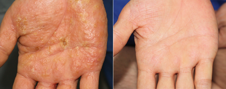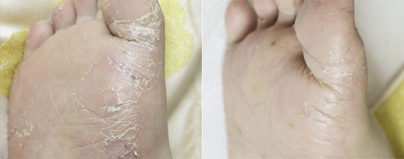 주로 손발에 가려움과 수포가 생기는 특징으로 만성으로 제발하는