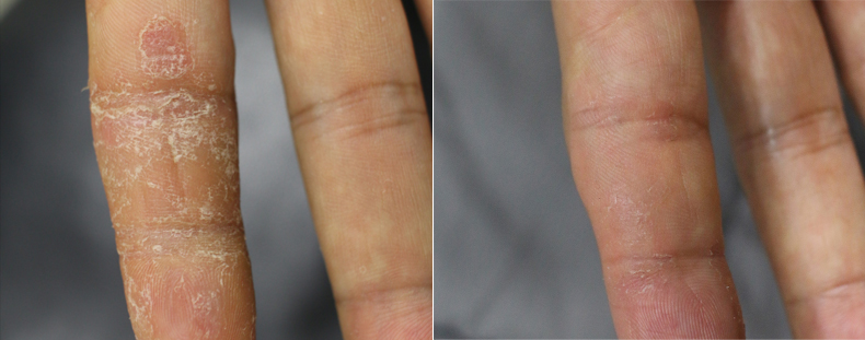 지속적인 습진성 피부염 상태로 지친 피부의 진정과