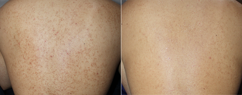 비후화되어 있는 각화된 닭살 모양의 피부층을 시술을 통해